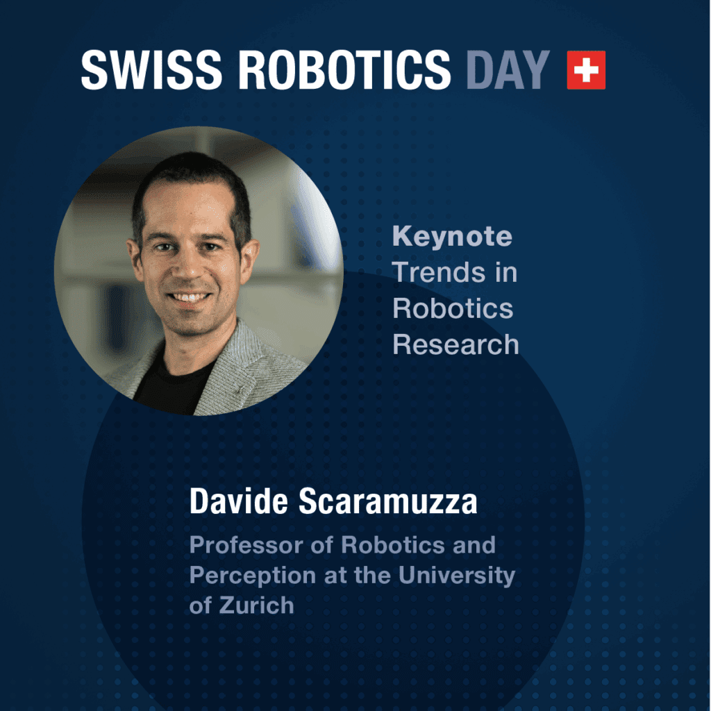 Davide Scaramuzza is a Professor of Robotics and Perception at the University of Zurich. He did his Ph.D. at ETH Zurich, a postdoc at the University of Pennsylvania, and was a visiting professor at Stanford University and NASA Jet Propulsion Laboratory. His research focuses on autonomous, agile navigation of mobile robots using standard and event-based cameras. He has made fundamental contributions to visual-inertial state estimation, autonomous vision-based agile navigation of micro flying robots, and low-latency perception with event cameras, which were transferred to many products, from drones to automobiles, cameras, AR/VR headsets, and mobile devices. In 2022, his team demonstrated that an AI-powered drone could outperform the world champions of drone racing. He received several awards, including a recent IEEE Technical Field Award, the elevation to IEEE Fellow, the IEEE Robotics and Automation Society Early Career Award, a European Research Council Consolidator Grant, a Google Research Award, and many paper awards. In 2015, he co-founded Zurich-Eye, today Meta Zurich, which developed the head-tracking software of the Meta Quest. In 2020, he co-founded SUIND, which builds autonomous drones for precision agriculture. Many aspects of his research have been featured in the media, such as The New York Times, The Guardian, The Economist, and Forbes.